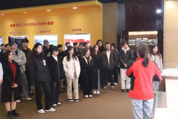 3月8日上午,师生们首先来到贾家庄村毛泽东同志诞辰131周年纪念展区。那泛黄的历史文献与珍贵影像资料承载了中国共产党领导人民奋斗的光辉历程。展区中详实的史料记载与生动的历史场景还原,令同学们深刻感受到革命先辈的崇高理想,进一步坚定了传承红色基因的信念。